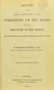 - Bowman, William (1849), Lectures on the parts concerned in the operations on the eye, and on the structure of the retina: Delivered at the Royal London Ophthalmic Hospital, Moorfields, June 1847. To which are Added, a Paper on the Vitreous Humor; and Also a Few Cases of Ophthalmic Disease, London: Longman, Brown, Green, and Longmans